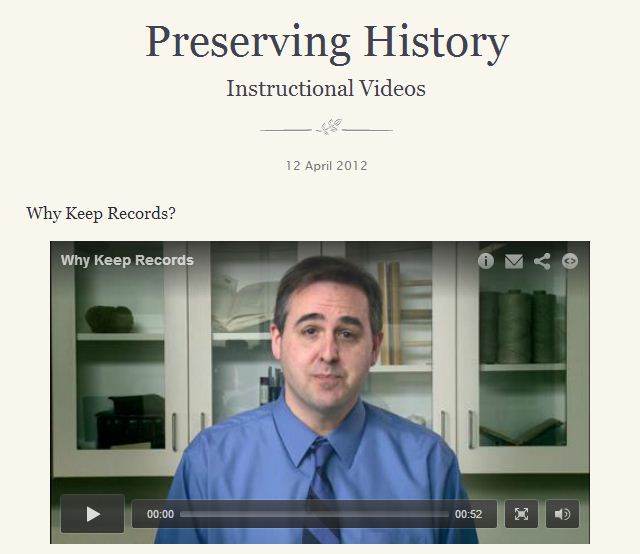 The Preserving History Instructional Videos page has a series of brief video vignettes on topics such as properly housing and storing artifacts.