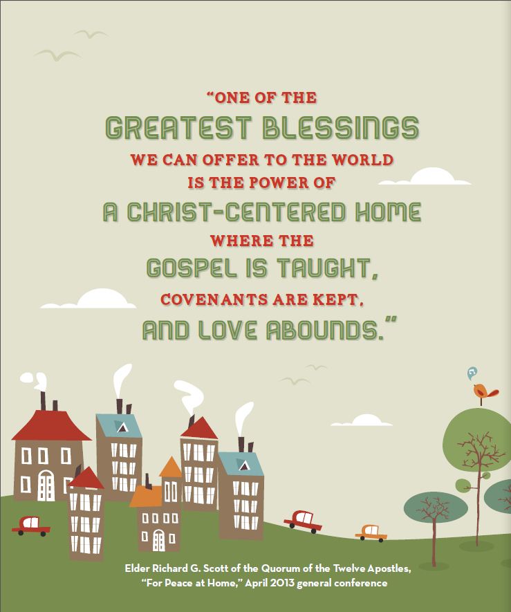 In April conference, Elder Richard G. Scott said that not only parents but also children have an important role in strengthening the family and the feeling of peace at home. “Be certain that every decision you make, whether temporal or spiritual, is conditioned on what the Savior would have you do. When He is the center of your home, there is peace and serenity. There is a spirit of assurance that pervades the home, and it is felt by all who dwell there” (“For Peace At Home“).