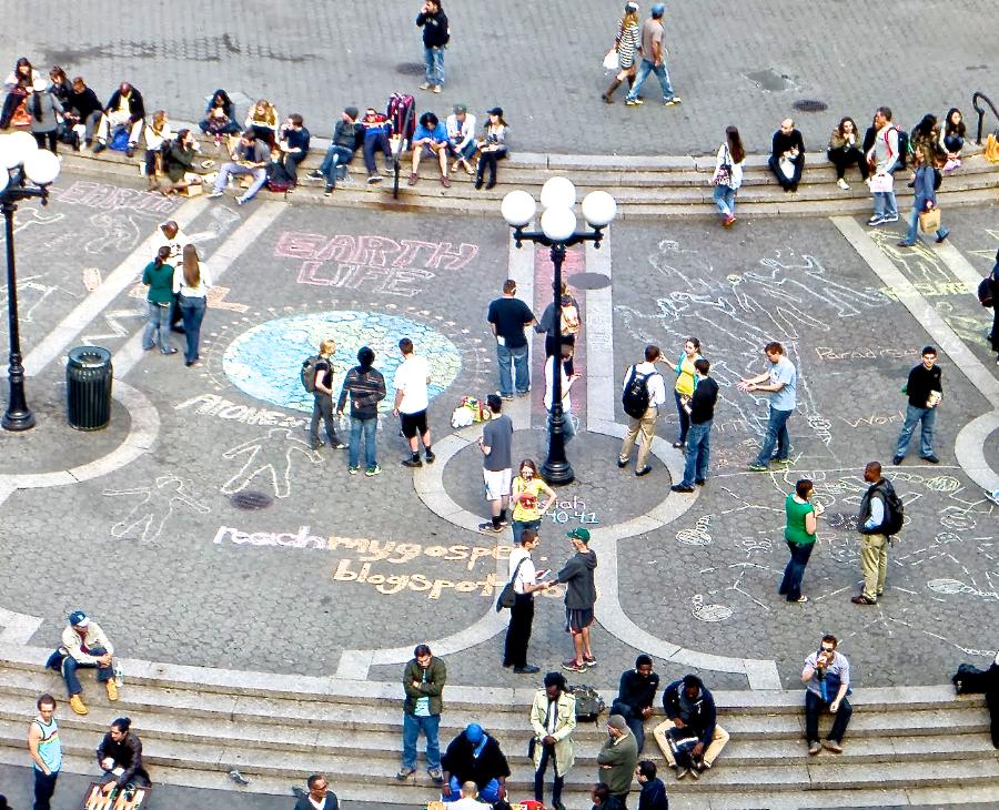 lds-missionary-chalk-plan-salvationA group of LDS missionaries in New York City found a creative way to teach people about the gospel. Usually, when you teach the plan of salvation, it’s helpful to have a diagram of what it looks like, right? To illustrate the plan of salvation, they created a massive mural using sidewalk chalk in New York’s Union Square.