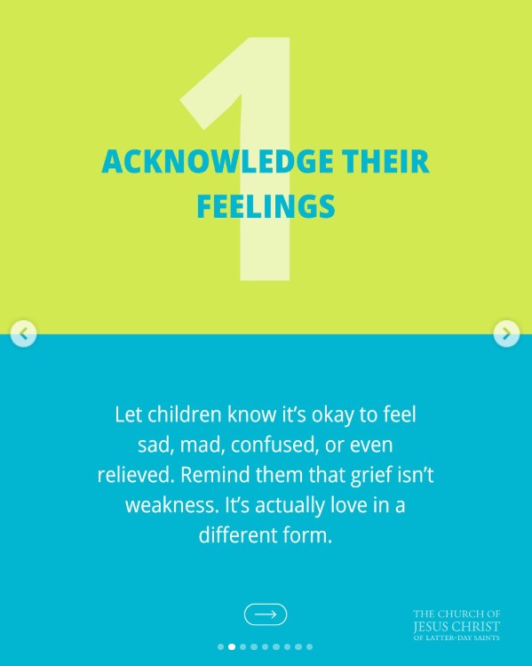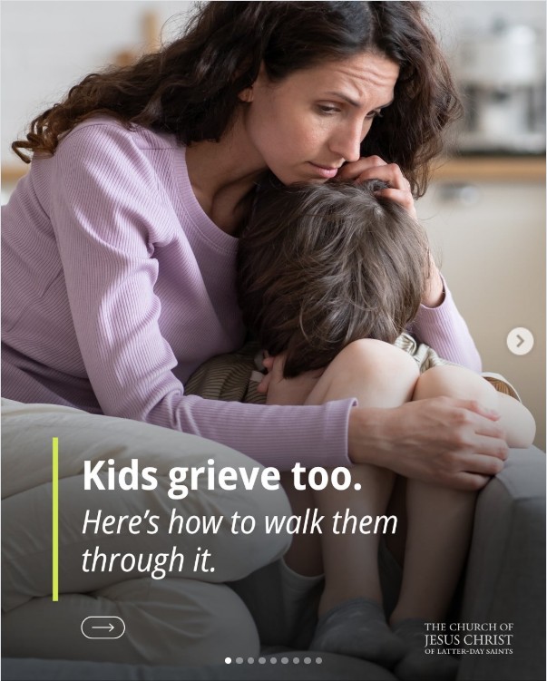 A post on the Church’s Caring Instagram page explains that kids grieve too. It provides 8 suggestions to help children deal with grief.